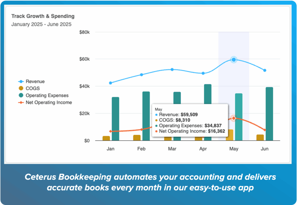 "I used to do my company books myself — they were constantly behind and were a constant stress on my to-do list. After onboarding with Ceterus, my books are always up-to-date to the prior month and I have a clear picture of my company's financials."